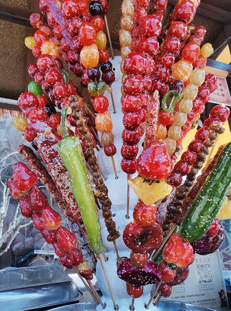 8网红冰糖葫芦,新型的造型冰糖葫芦一般开在景点门口,或者步行街附近,这种冰糖葫芦一般卖10-20元一串,它虽然价格比较贵,但是做工非常漂亮,造型也很多,所以愿意购买的人也不少,因此也很赚钱。
