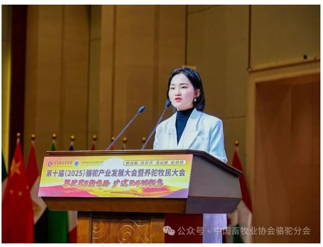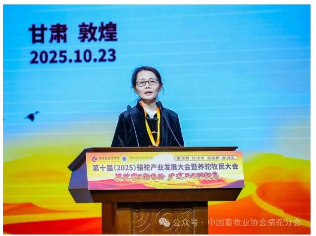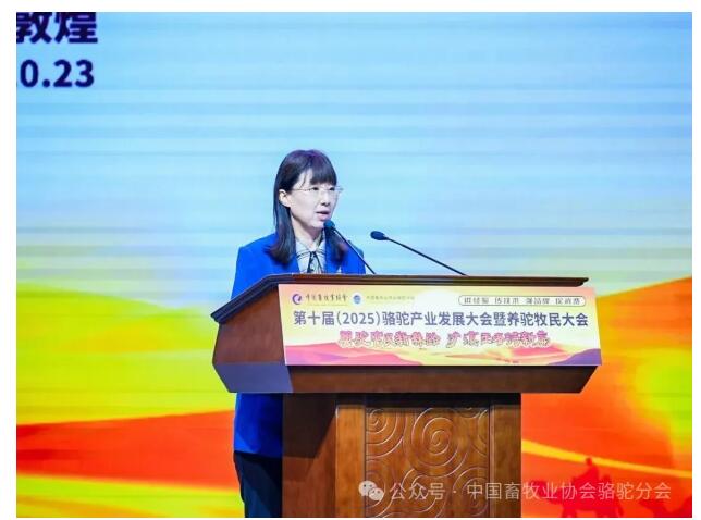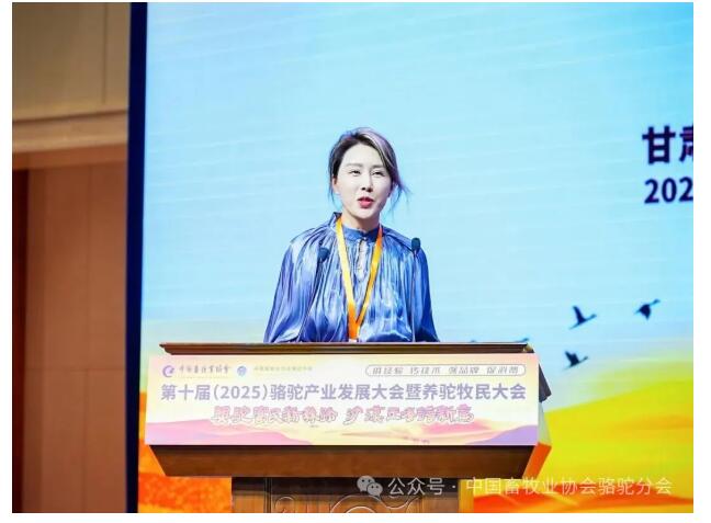 ▲新疆维吾尔自治区农业农村厅畜牧局二级调研员薛静作题为《新疆自治区骆驼产业发展规划与地方支持政策解读》的报告。